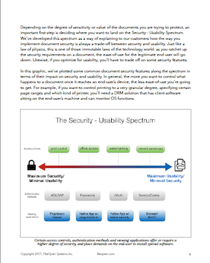In this engaging 15-page e-book, you'll learn why passwords don't work as true document security, how to approach the tradeoff between security and usability in the Security-Usability Spectrum, and what to look for in rights management solutions with our DRM Feature Checklist.